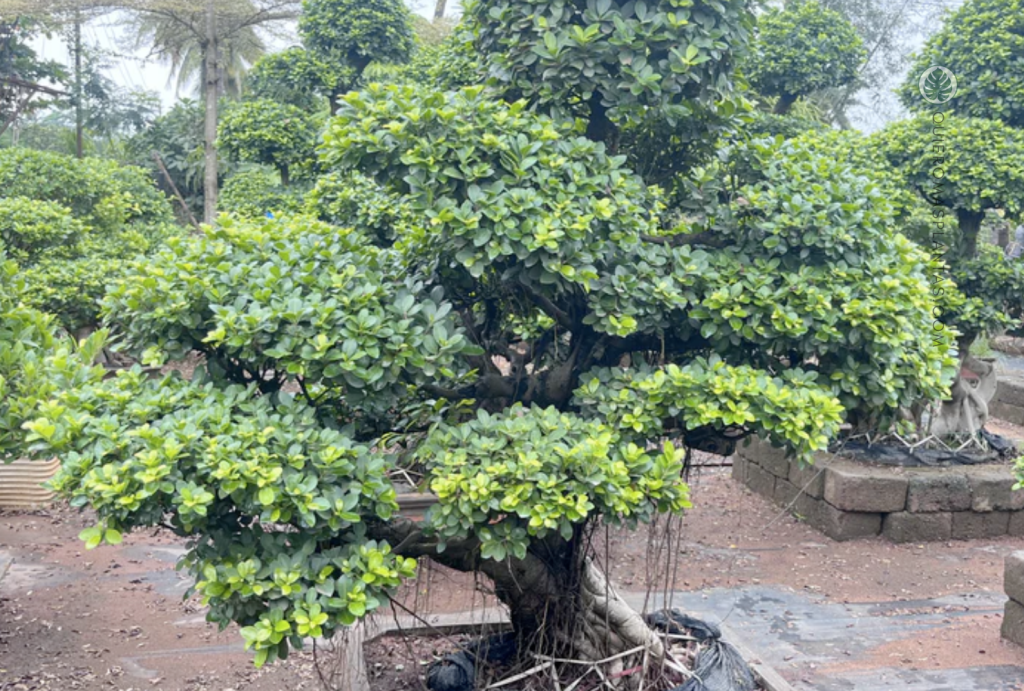 Ficus Microcarpa Green Emerald: tiene hojas ovaladas, redondeadas y brillantes. Es muy adecuado para la transformació de Bonsai. Tiene raíces aéreas y raíces expuestas, que dan apariencia de gran edad.