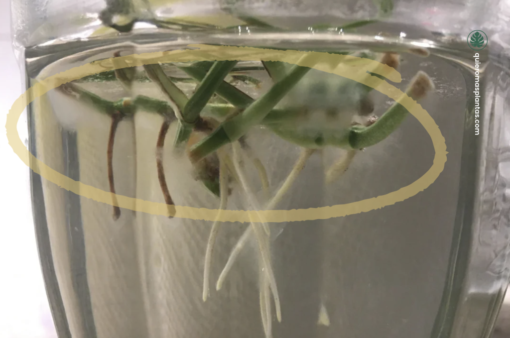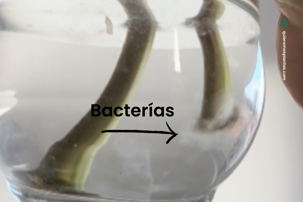 Cuando mantenemos por un tiempo prolongado nuestro esqueje en agua, hacemos que esa agua estancada y quieta agote el oxígeno que está en ella.